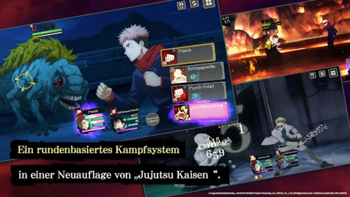 Stellen Sie Ihr ultimatives Team zusammen und bereiten Sie sich auf dynamische Konfrontationen vor, die direkt aus dem Anime entsprungen sein könnten. Das Spiel lädt Sie ein, Fluchtechniken mit Ihren eigenen Händen zu wirken, während Sie strategisch kluge Entscheidungen treffen, um mächtige Fluchgeister auszutreiben. Jeder Kampf ist ein visuelles Spektakel, das die rohe Kraft und die beeindruckenden Fähigkeiten der Charaktere von Jujutsu Kaisen in atemberaubender Qualität darstellt. Meistern Sie die Kunst des Jujutsu und beweisen Sie Ihr Können in hitzigen Gefechten, die Taktik und Reflexe gleichermaßen fordern.